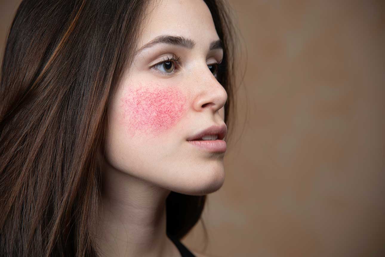 La couperose est une anomalie vasculaire qui se traduit par des rougeurs au niveau du du menton, des joues, du nez et du front. Plus la maladie avance, plus ces rougeurs risquent de devenir permanentes, avec notamment l’apparition de télangiectasies sur les les joues ainsi que sur les ailes du nez.